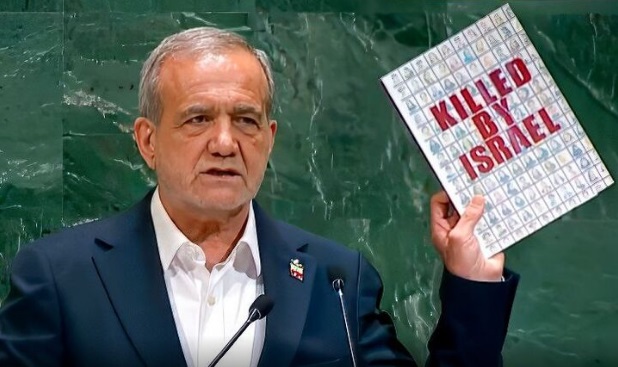 صریر: مسعود پزشکیان ضمن سخنرانی خود در سازمان ملل با اشاره به حمله رژیم صهیونیستی به ایران، تصاویر شهدای این حمله تروریستی را در سازمان ملل بالا بردند و از مظلومیت آنها و جنایات رژیم صهیونسیتی گفت.