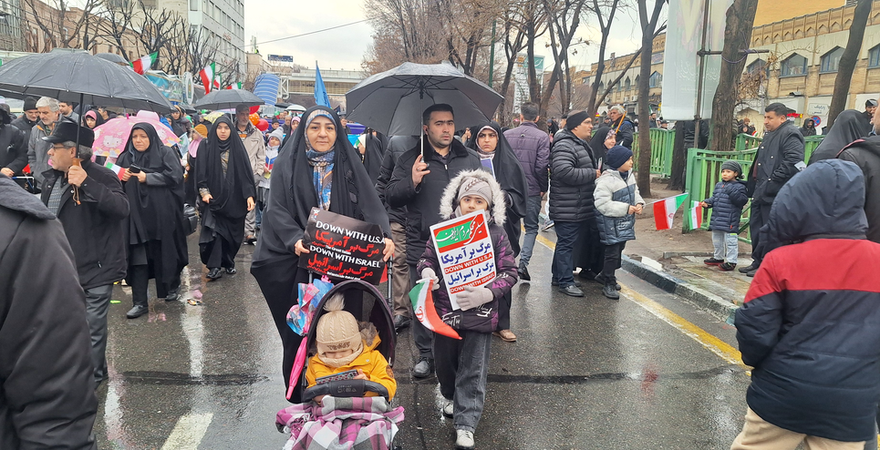 راهپیمایان با در دست داشتن پرچمهای ایران و پلاکاردهایی با مضامین مختلف، در حالی که چترها و بارانیها بخشی از چهره متفاوت مراسم امسال را شکل داده بود، در مسیرها حرکت کردند. صدای شعارها در میان بارش باران طنینانداز بود و فضای عمومی شهر حال و هوای ویژهای به خود گرفته بود.